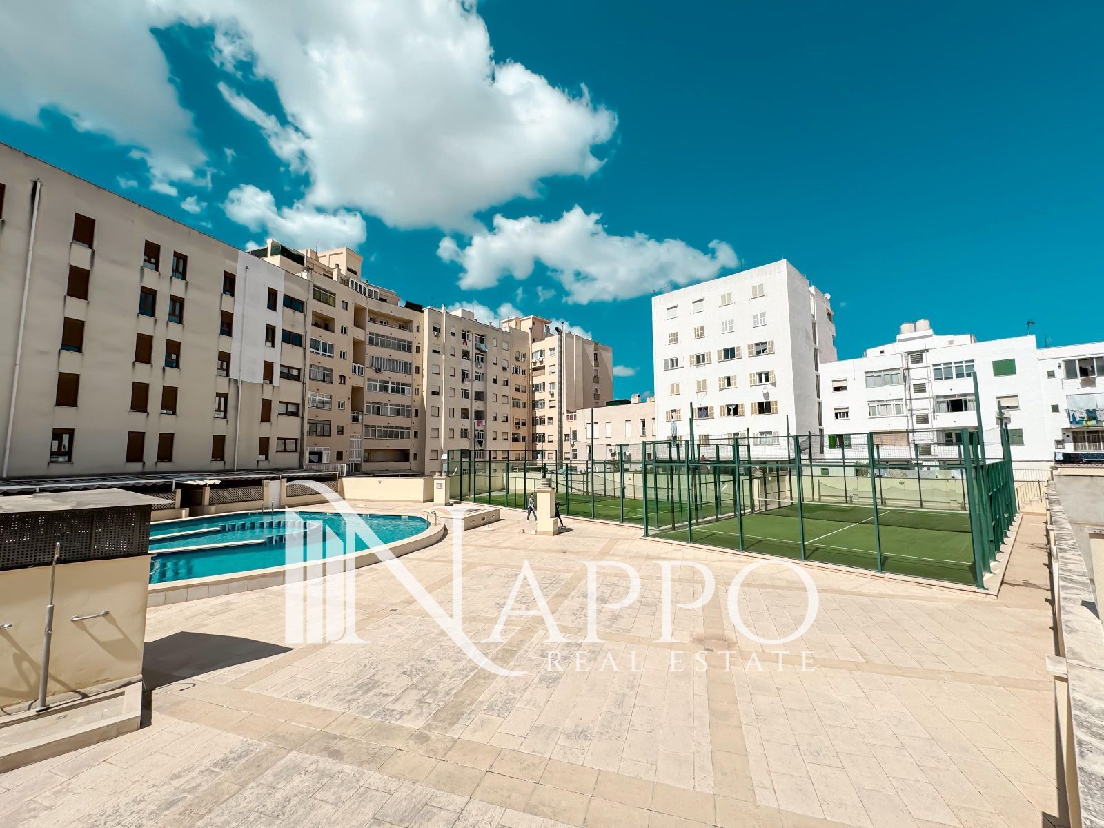 Nappo Real Estate tiene el placer de presentar en exclusiva este encantador piso de 85 m2 ubicado en el centro de Palma, a solo dos minutos del Mercat de Pere Garau, 10 minutos del Corte Inglés de Avenidas y de plaza de España, dentro de un complejo residencial que ofrece comodidades excepcionales. Podrás disfrutar de dos pistas de pádel, una piscina con zona de baja profundidad ideal para relajarse y un parque infantil para los más pequeños.