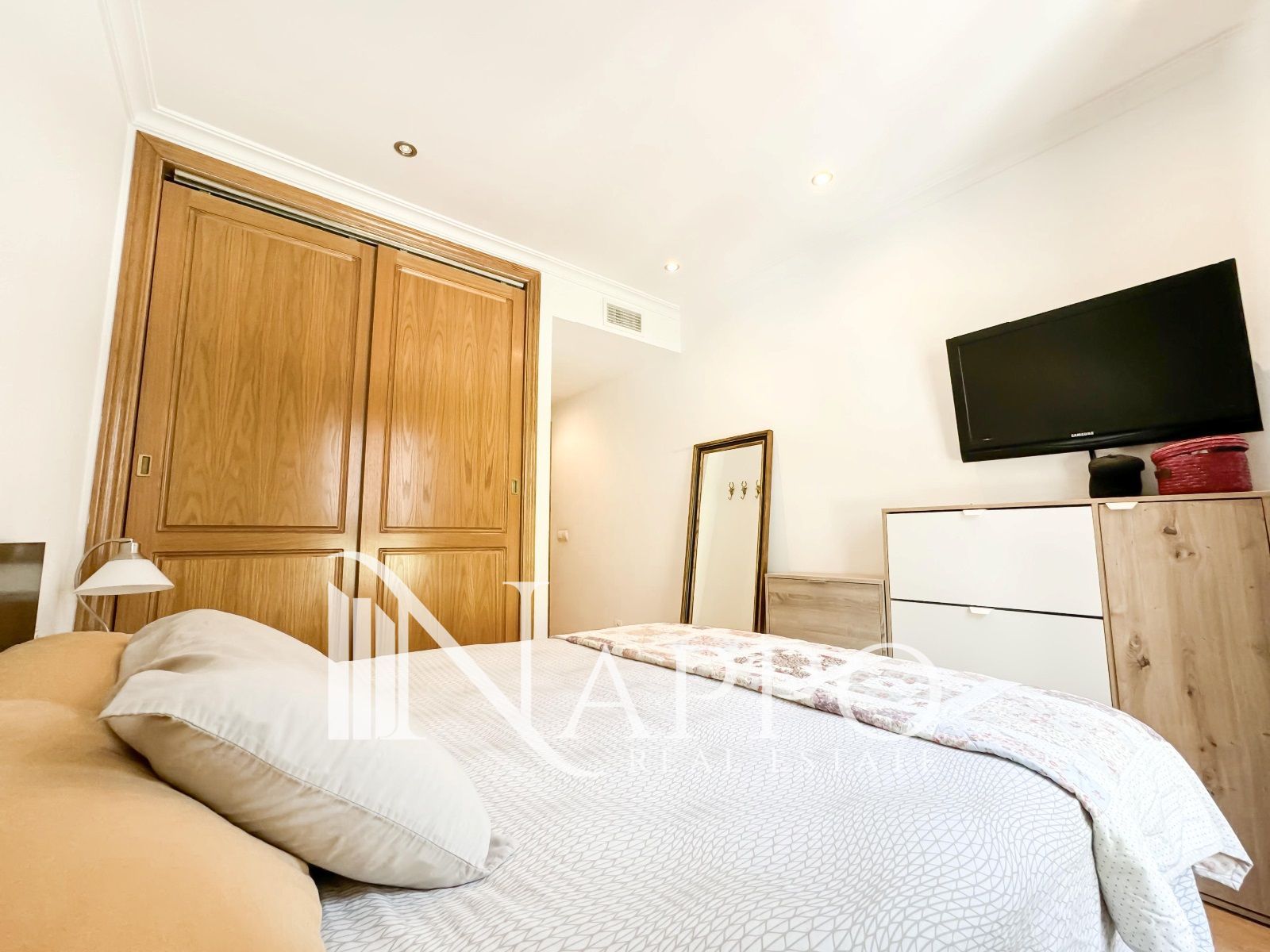 El piso cuenta con un amplio salón comedor con acceso directo a un balcón orientado al sur, lo que te permitirá disfrutar de la luz natural y del clima mediterráneo. La cocina es grande y funcional, con una coladuría adyacente para mayor comodidad. Además, dispone de un baño para invitados, dos habitaciones con armarios empotrados, siendo una de ellas con baño en suite con columna de hidromasaje.