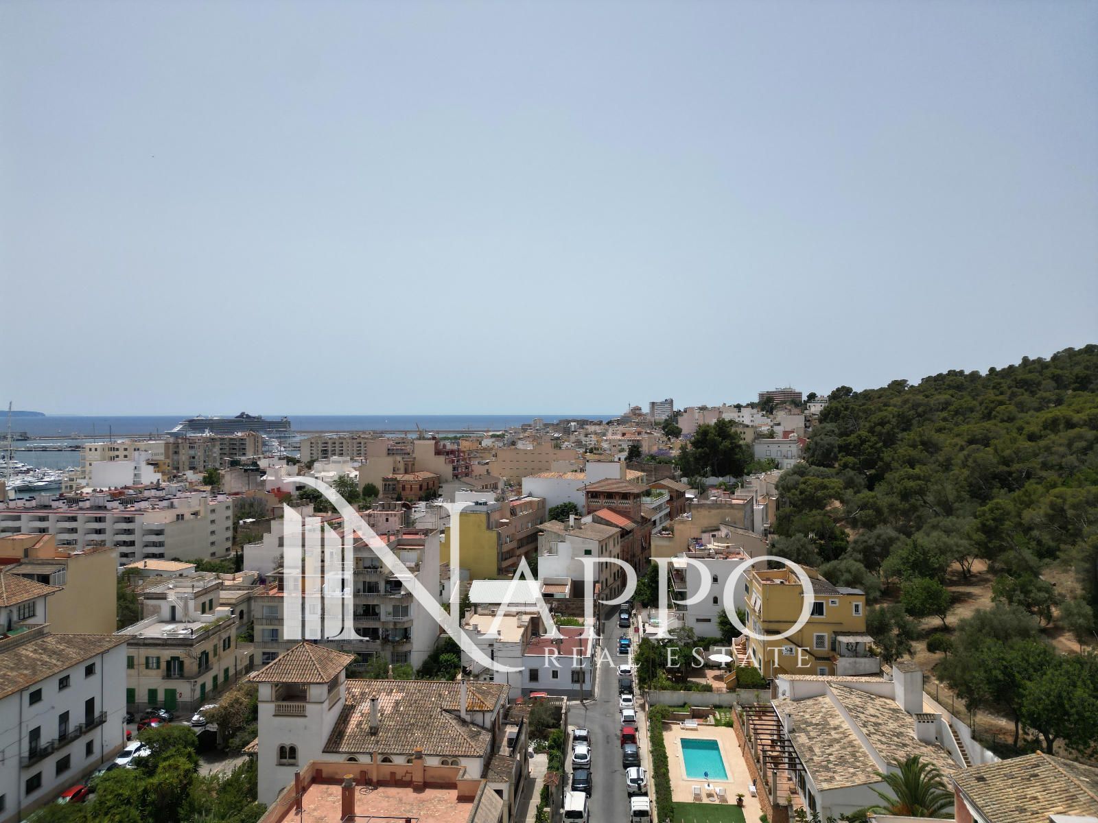 Su espacio, se distribuye en salón comedor, amplio y muy luminoso, este espacio es el corazón del hogar. Su chimenea de estilo tradicional crea un ambiente acogedor y cálido para los días de invierno. Las ventanas ofrecen vistas despejadas de la majestuosa Catedral de Palma, la ciudad y el mar, proporcionando un panorama impresionante desde la comodidad de tu hogar, con acceso directo a una amplia terraza, ideal para disfrutar del aperitivo al aire libre, cultivar tus plantas favoritas y relajarte en un entorno sereno. Aquí, podrás disfrutar del clima mediterráneo mientras contemplas las vistas panorámicas. La cocina, completamente equipada con todos los electrodomésticos necesarios para tu día a día. Su diseño funcional, facilita la preparación de comidas, convirtiendo la cocina en un espacio práctico. El cuarto de baño con plato de ducha y una habitación Doble, con armario empotrado que maximiza el espacio de almacenamiento, y vistas al bosque de Bellver, garantizando un entorno tranquilo y natural para tu descanso.