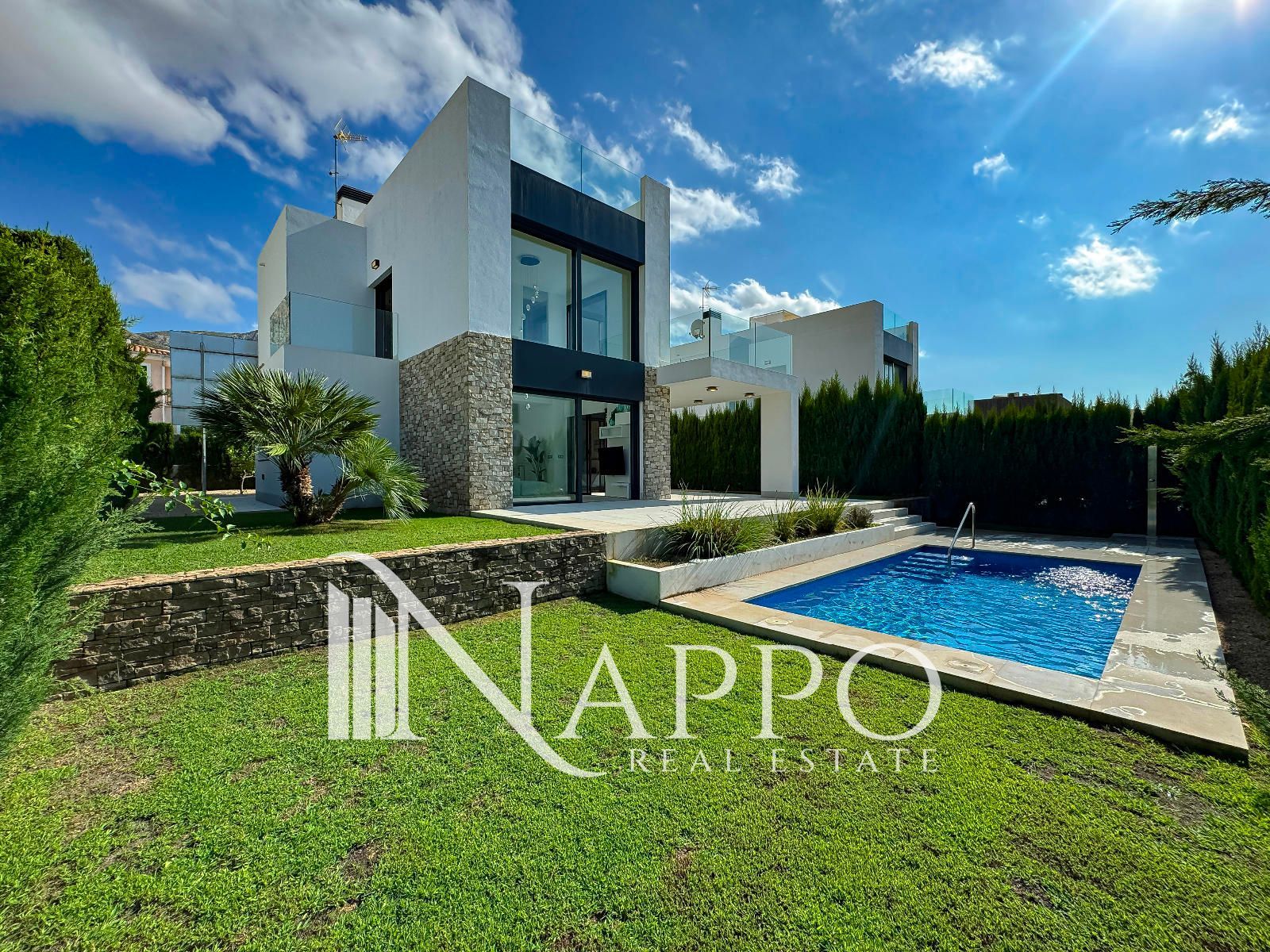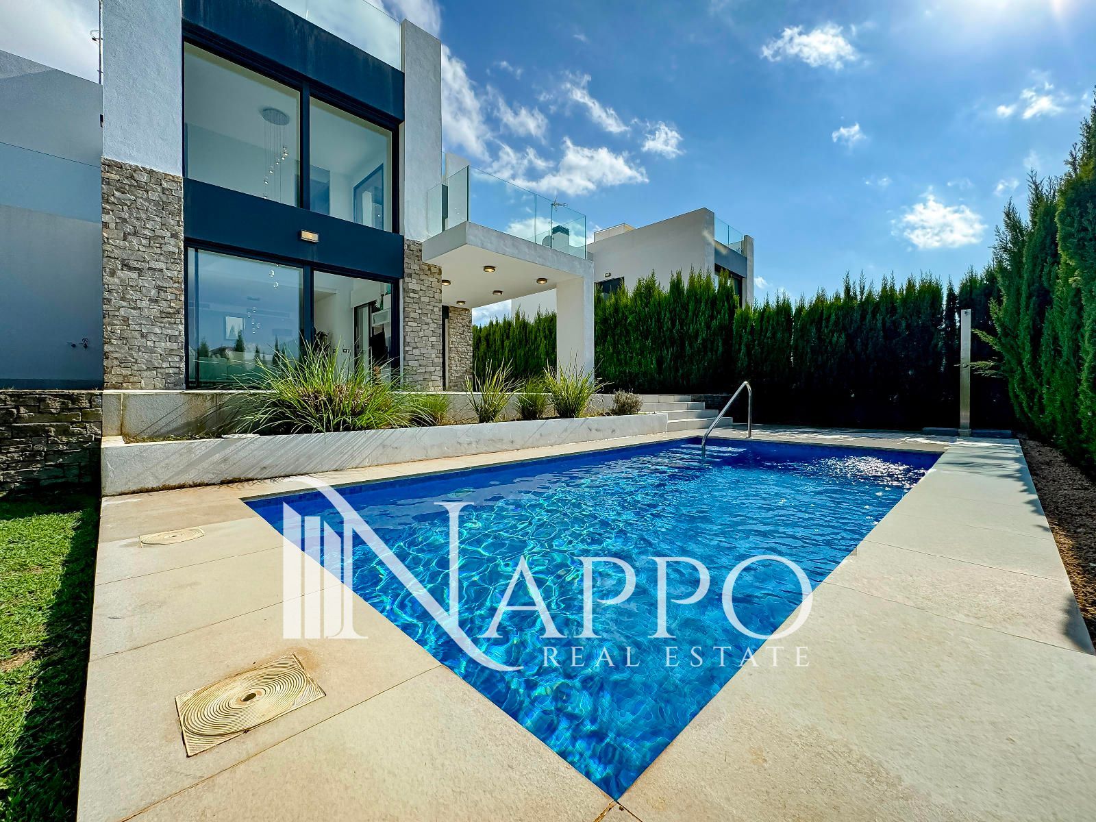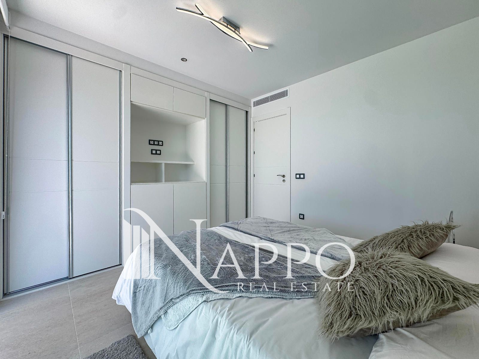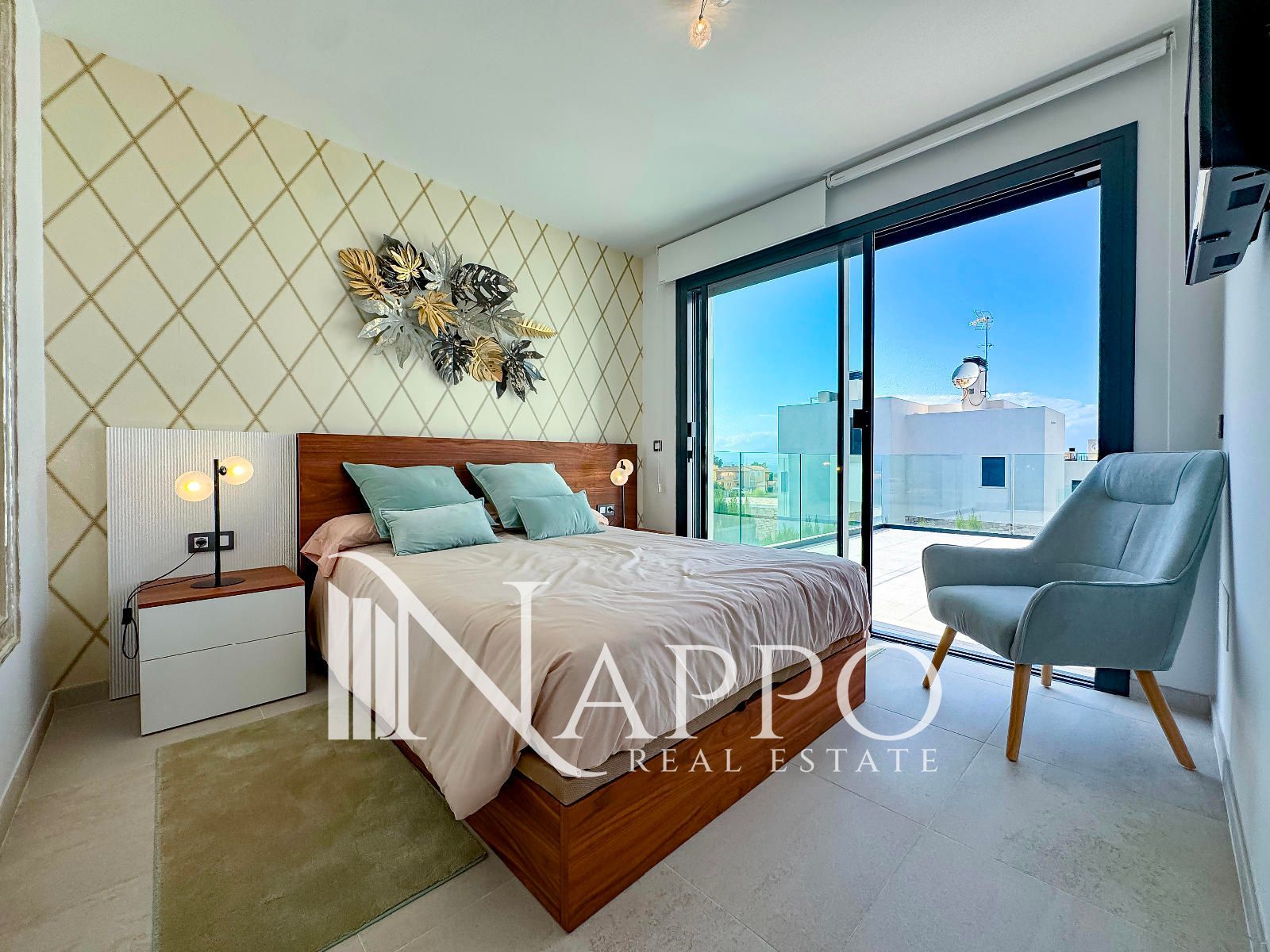 Con 3 dormitorios y 3 baños, se asienta sobre una parcela privada de 369 m² con acceso independiente. El exterior está concebido para disfrutar cada instante: jardín mediterráneo con riego automático, piscina privada y un solárium en la planta superior donde el horizonte marino será el telón de fondo de tus mejores momentos.