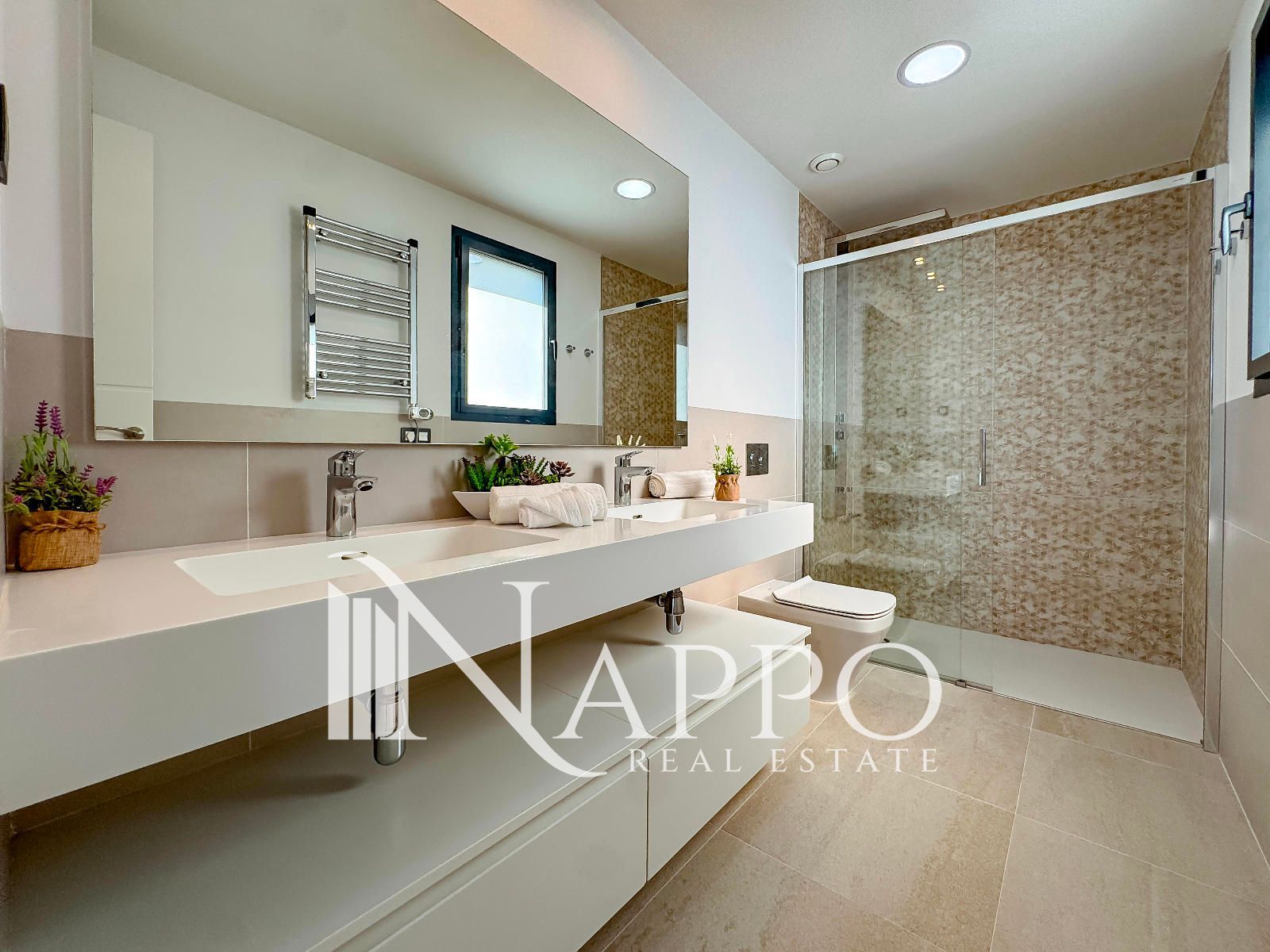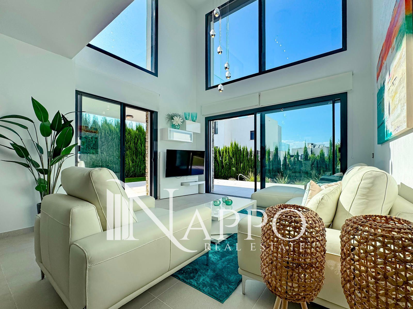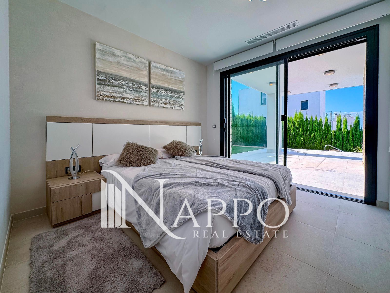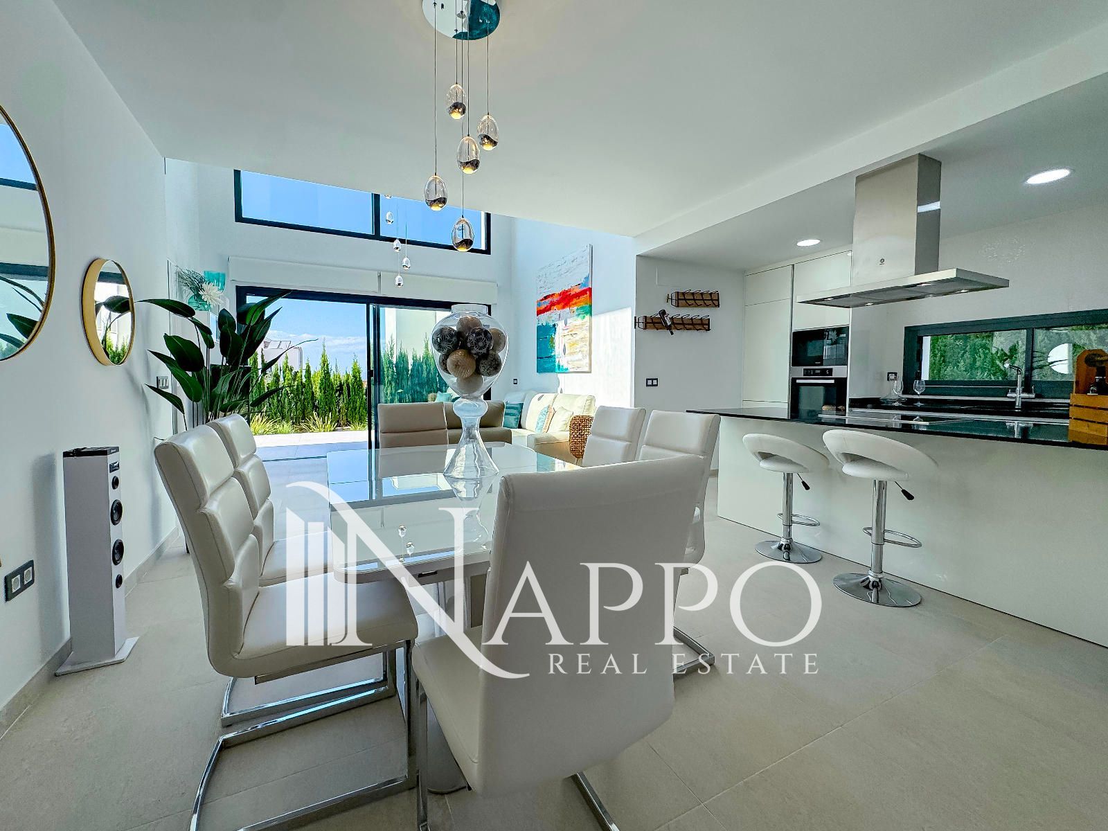 Con 3 dormitorios y 3 baños, se asienta sobre una parcela privada de 369 m² con acceso independiente. El exterior está concebido para disfrutar cada instante: jardín mediterráneo con riego automático, piscina privada y un solárium en la planta superior donde el horizonte marino será el telón de fondo de tus mejores momentos.