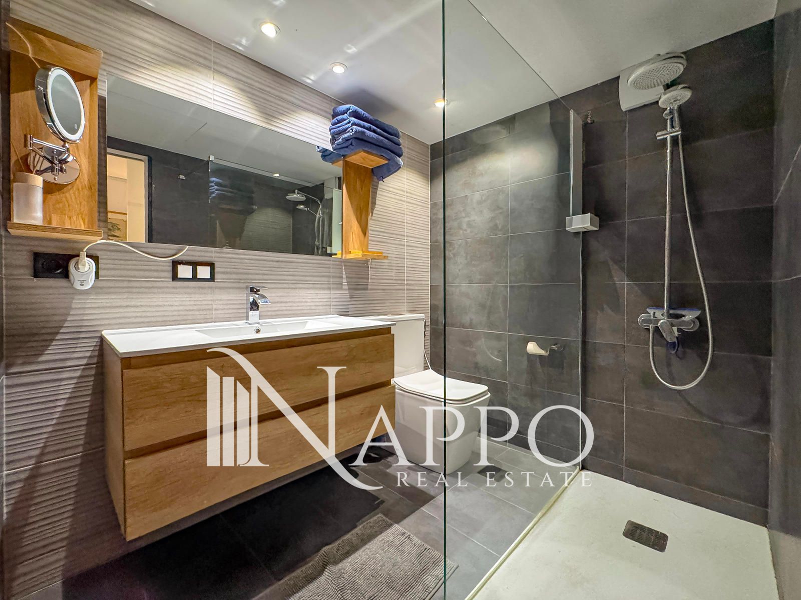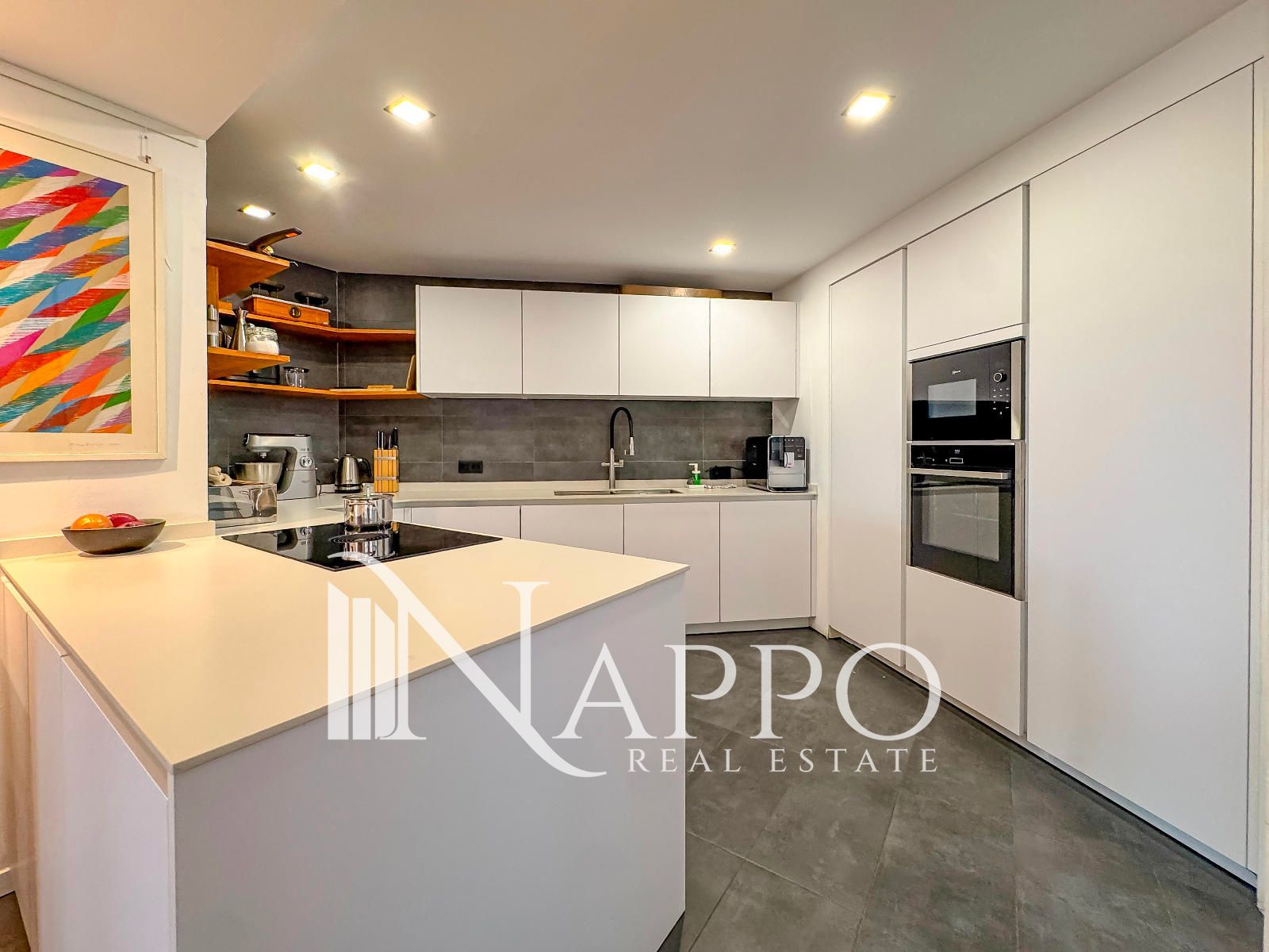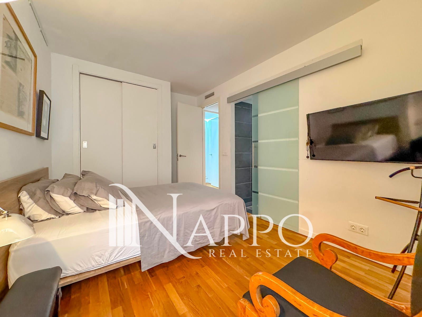 La vivienda ha sido renovada con materiales de alta calidad y un diseño contemporáneo que prioriza la luz, el confort y la funcionalidad. Su distribución cuenta con tres dormitorios, dos de ellos con baño en suite, y un tercer baño completo. La zona de día se compone de una moderna cocina abierta, con acceso a la coladuria, un espacioso comedor y un salón inundado de luz natural, con acceso directo a un balcón con vistas al Paseo Marítimo. Desde el mismo salón, se accede a una magnífica terraza de 120 m², un espacio ajardinado con exuberante vegetación tropical que invita a relajarse, compartir momentos en buena compañía o simplemente disfrutar de las vistas al Mediterráneo mientras los yates navegan por la bahía.