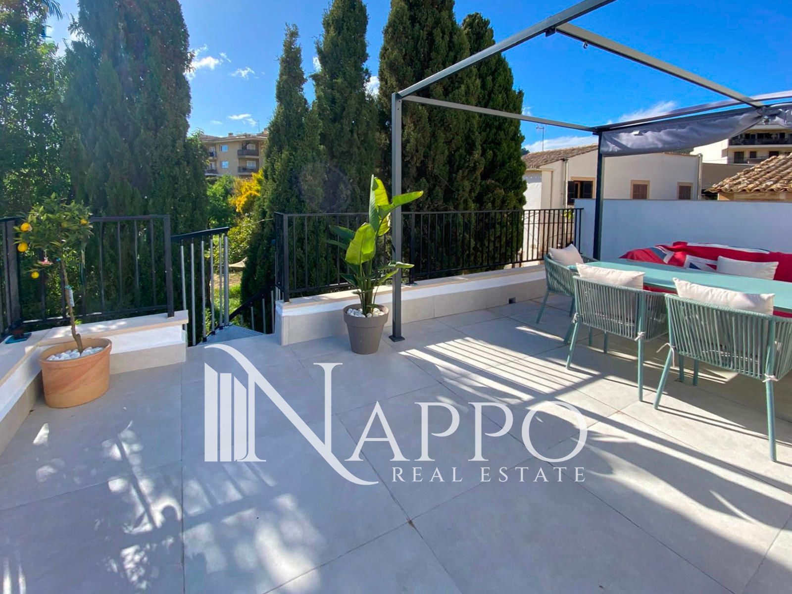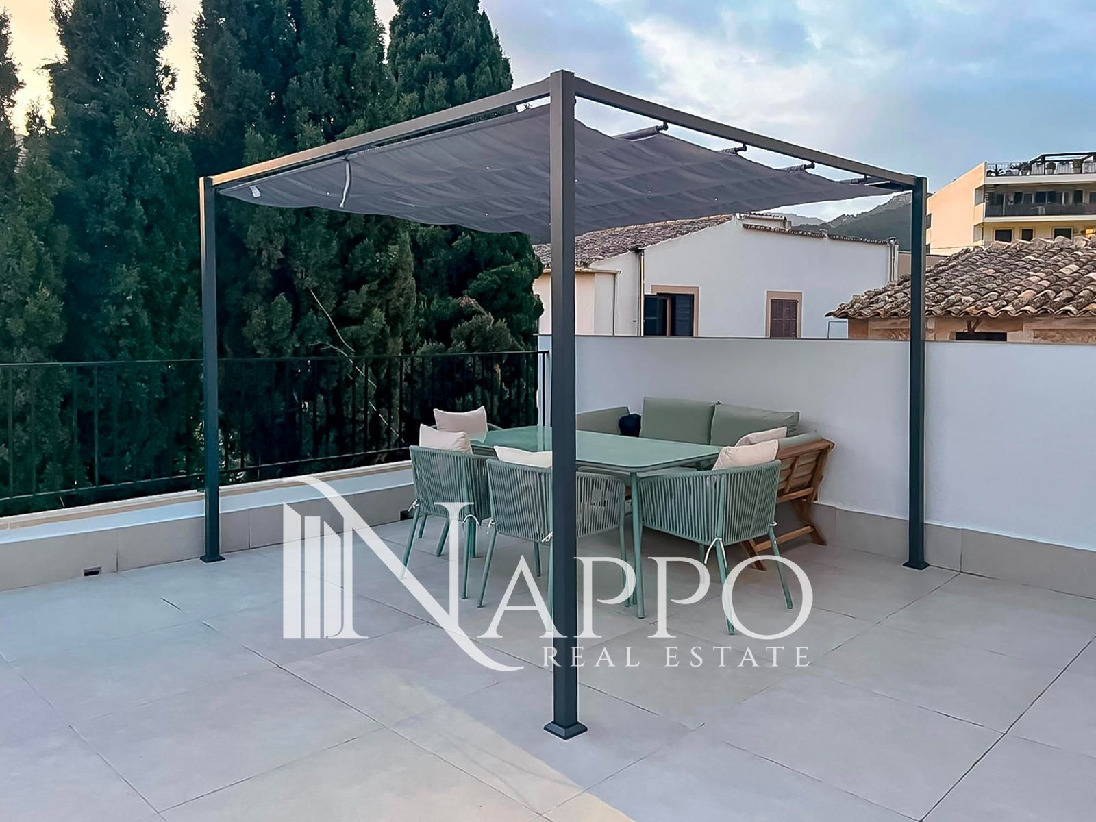 En la planta superior, una espectacular terraza privada en la azotea invita a disfrutar del sol mallorquín y de agradables veladas al aire libre, mientras que la terraza del nivel inferior ofrece un rincón más íntimo y relajado, perfecto para desconectar a cualquier hora del día.