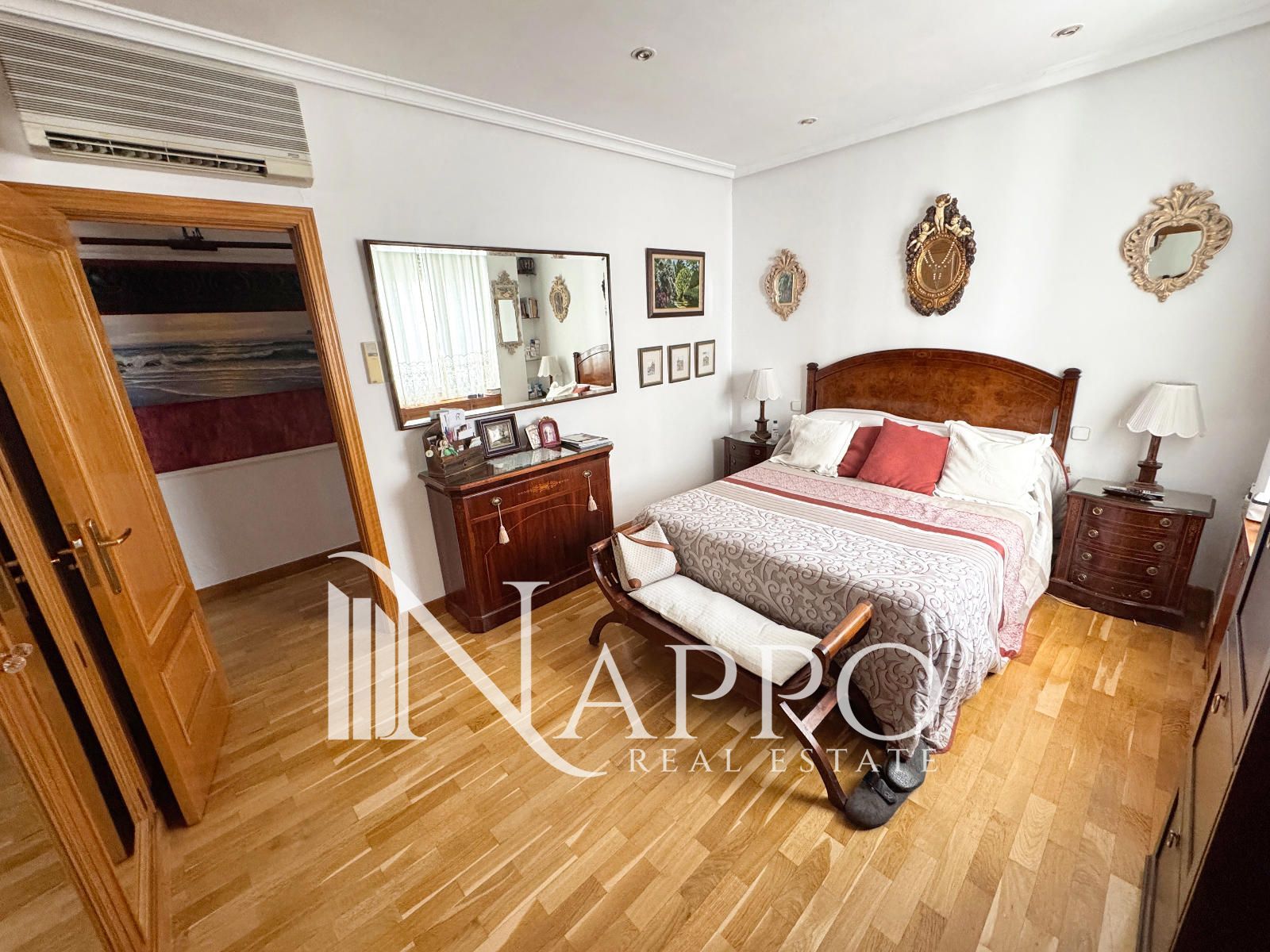 Nos recibe un hall imponente con armario empotrado gabanero, que da paso a un majestuoso salón-comedor con grandes ventanales y acceso a la terraza. La zona de noche incluye una master suite con baño incorporado, tres amplios dormitorios adicionales, un baño completo con doble ventana y una cocina-office amplia con salida a una segunda terraza destinada a lavandería con montacargas privado y acceso directo a la vivienda.