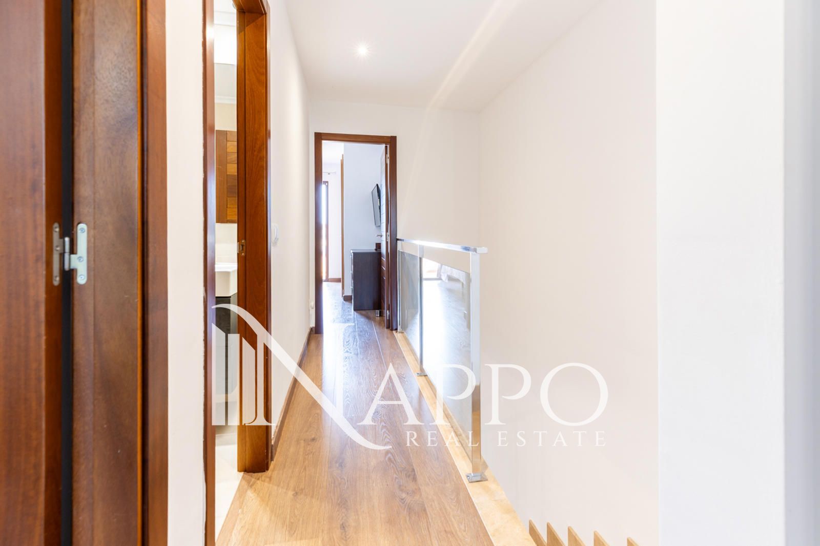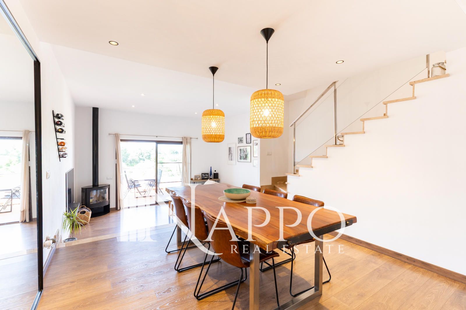 La planta superior está destinada a la zona de noche, con dos dormitorios dobles, un baño completo, y la suite principal, que ofrece baño privado y una terraza con vistas a la piscina y al entorno natural.