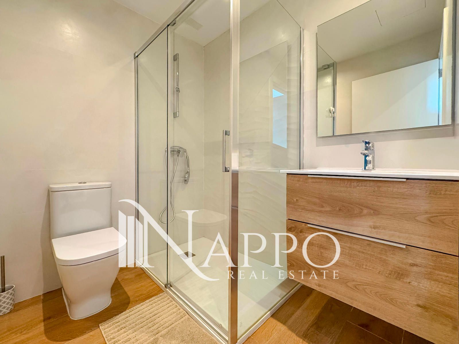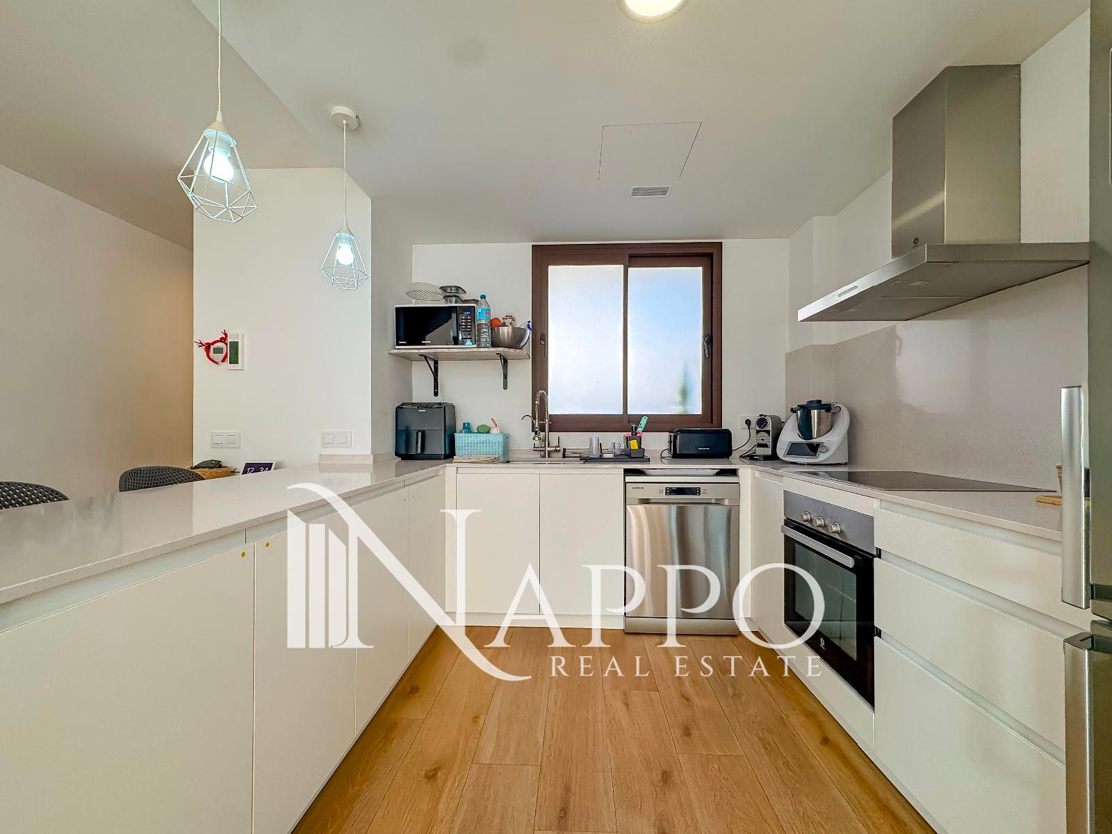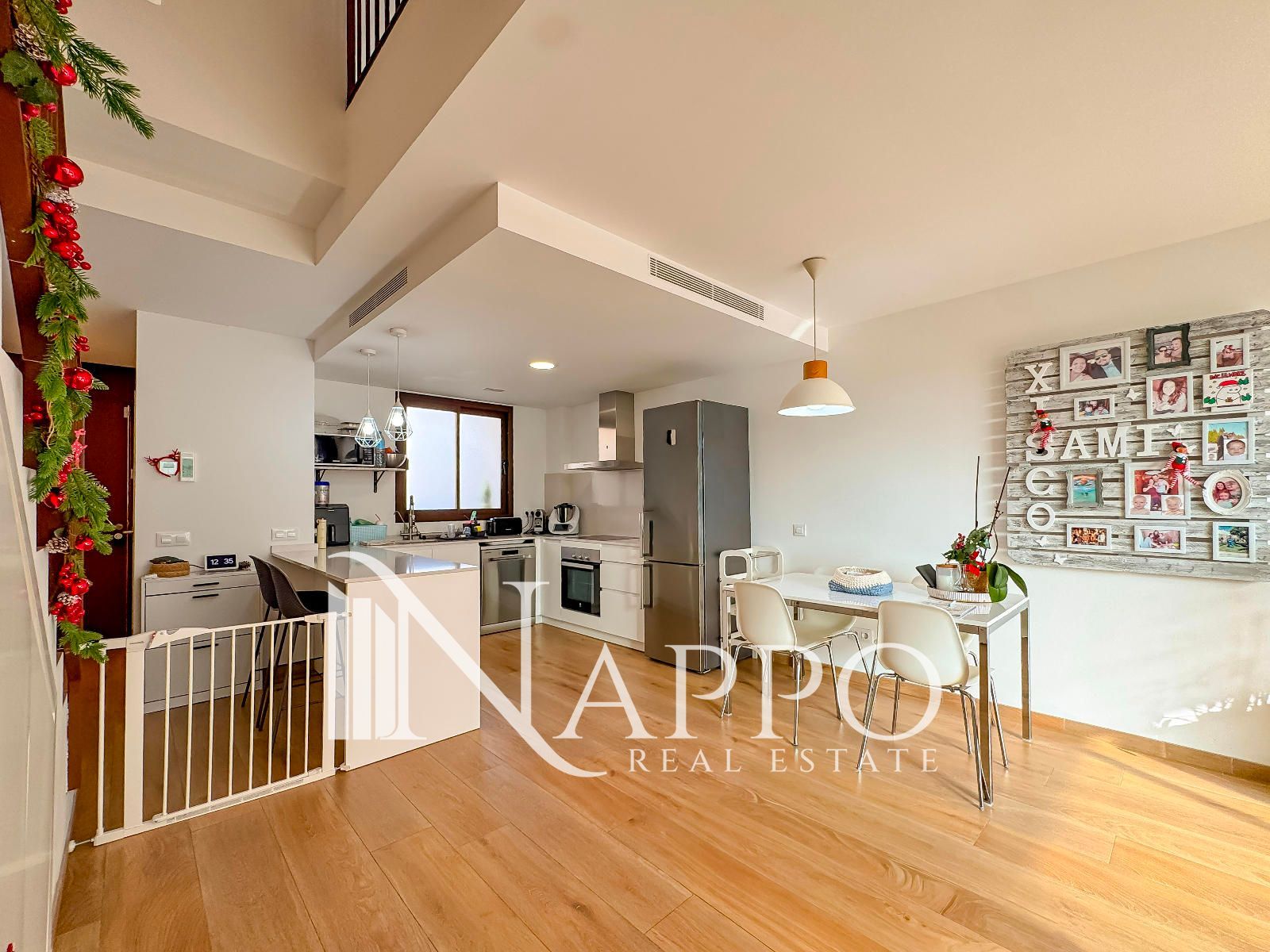 En la planta baja encontrarás una cocina abierta, totalmente amueblada y equipada con todos los electrodomésticos, conectada a un amplio salón-comedor muy luminoso con acceso directo a la terraza privada, donde podrás disfrutar de una preciosa piscina ideal para compartir momentos en familia o con amigos. En esta planta también dispones de un aseo de cortesía.