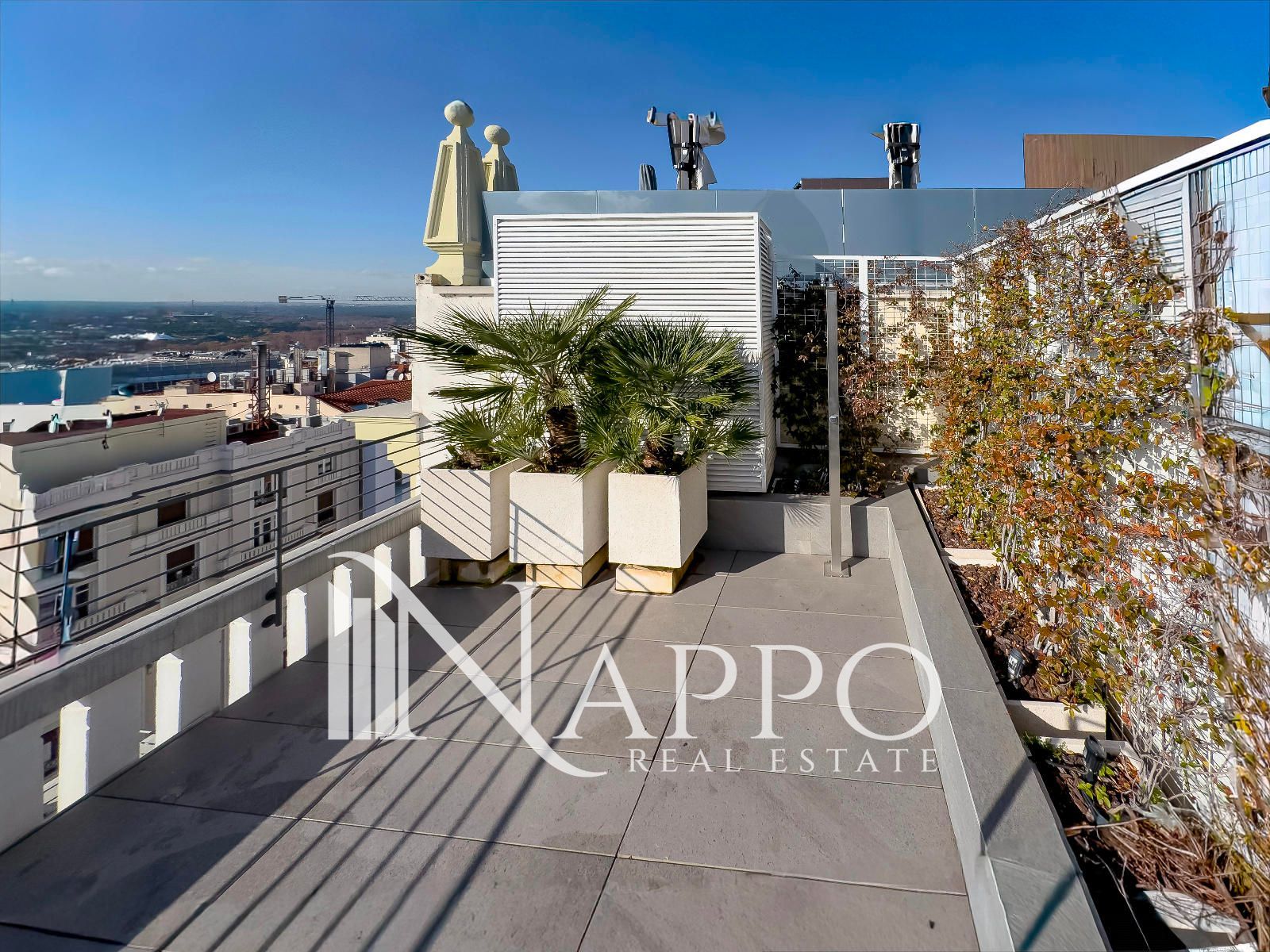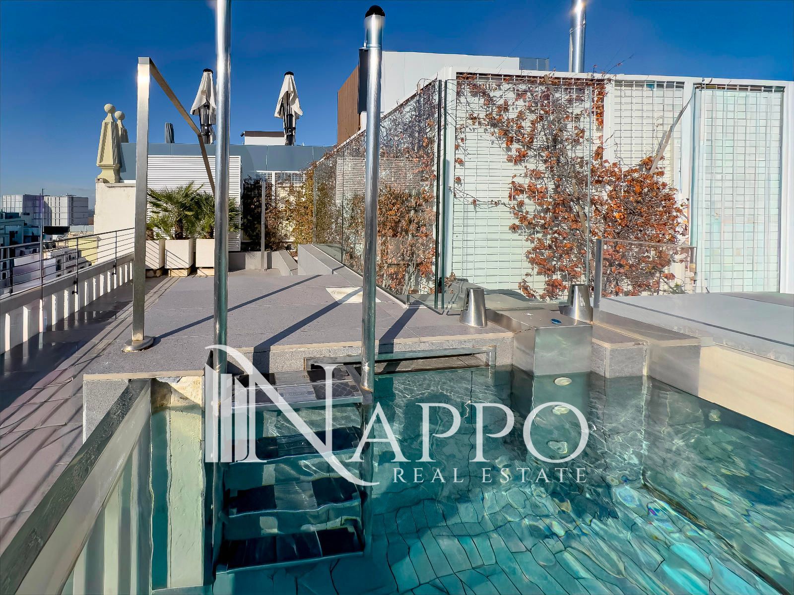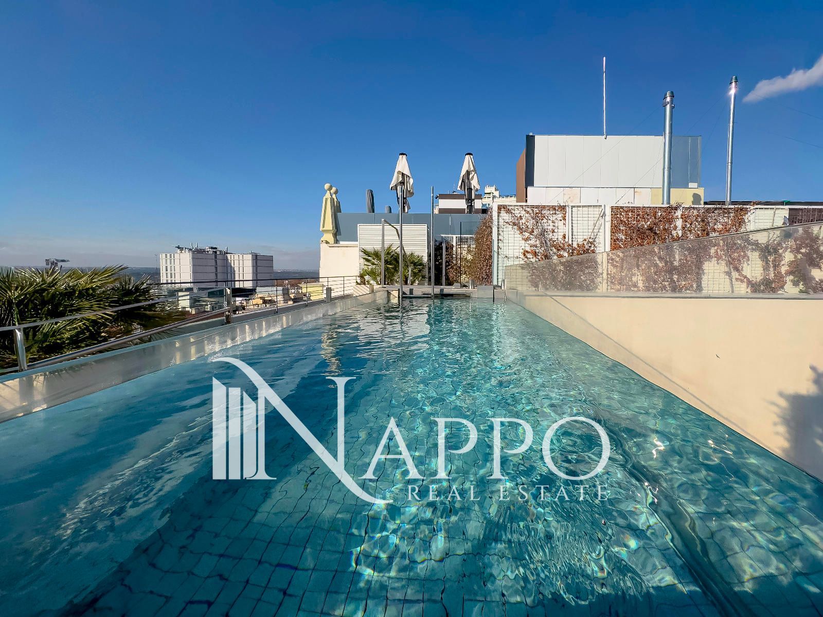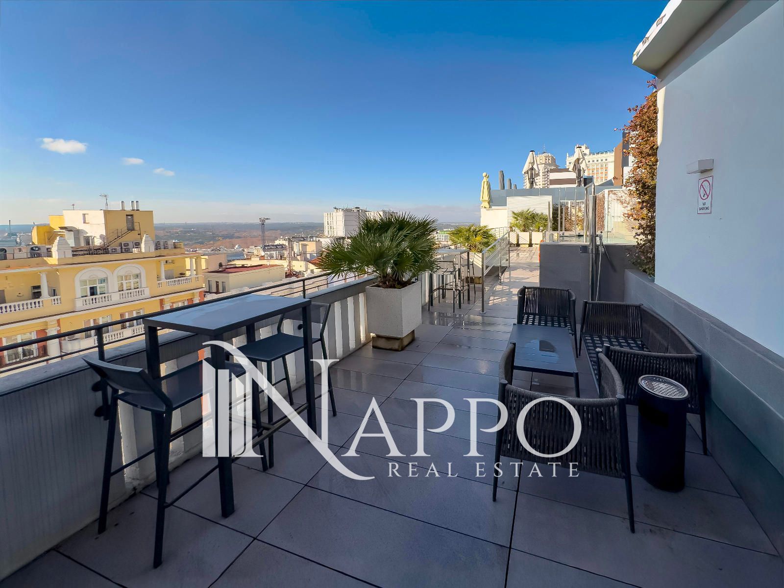 Nappo Real Estate presenta esta maravillosa segunda planta exterior con plaza de parking y con vistas directas a la Gran Vía; un piso esquinero lleno de luz natural gracias a su orientación sureste. El paraíso lo tenemos en el rooftop de la última planta con impresionantes vistas panorámicas 360º a todo Madrid; dispone de gimnasio totalmente equipado, terraza con diferentes ambientes y piscina privada con solárium.